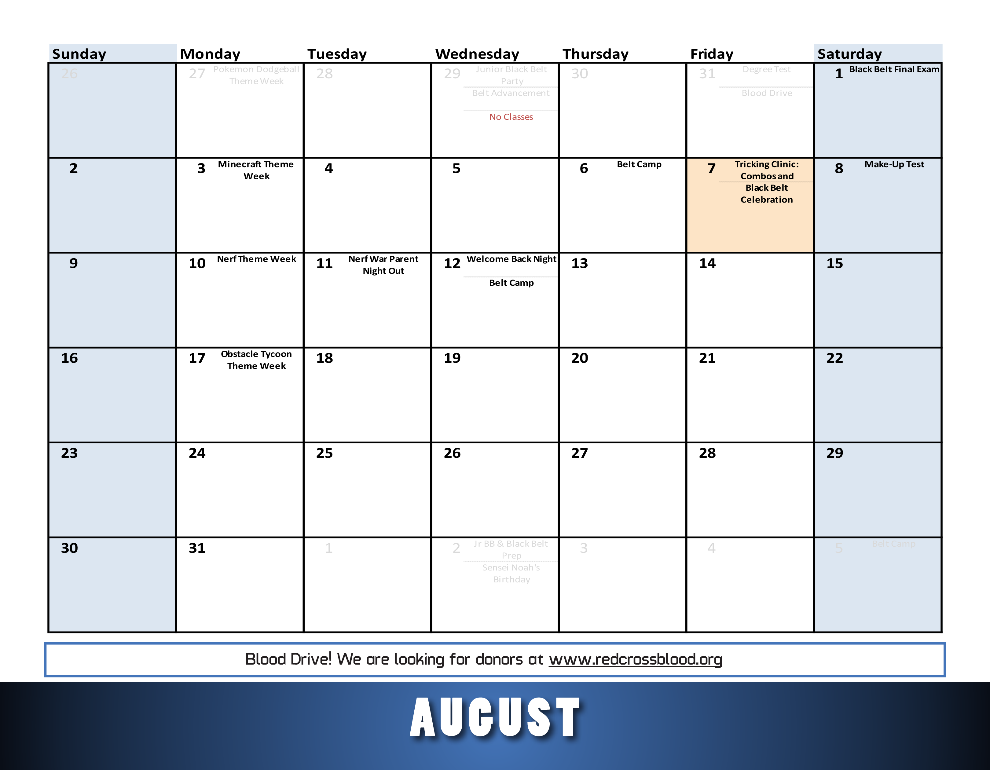 Black Belt Final Exam: Saturday Aug 1st 2 – 10:30 PM