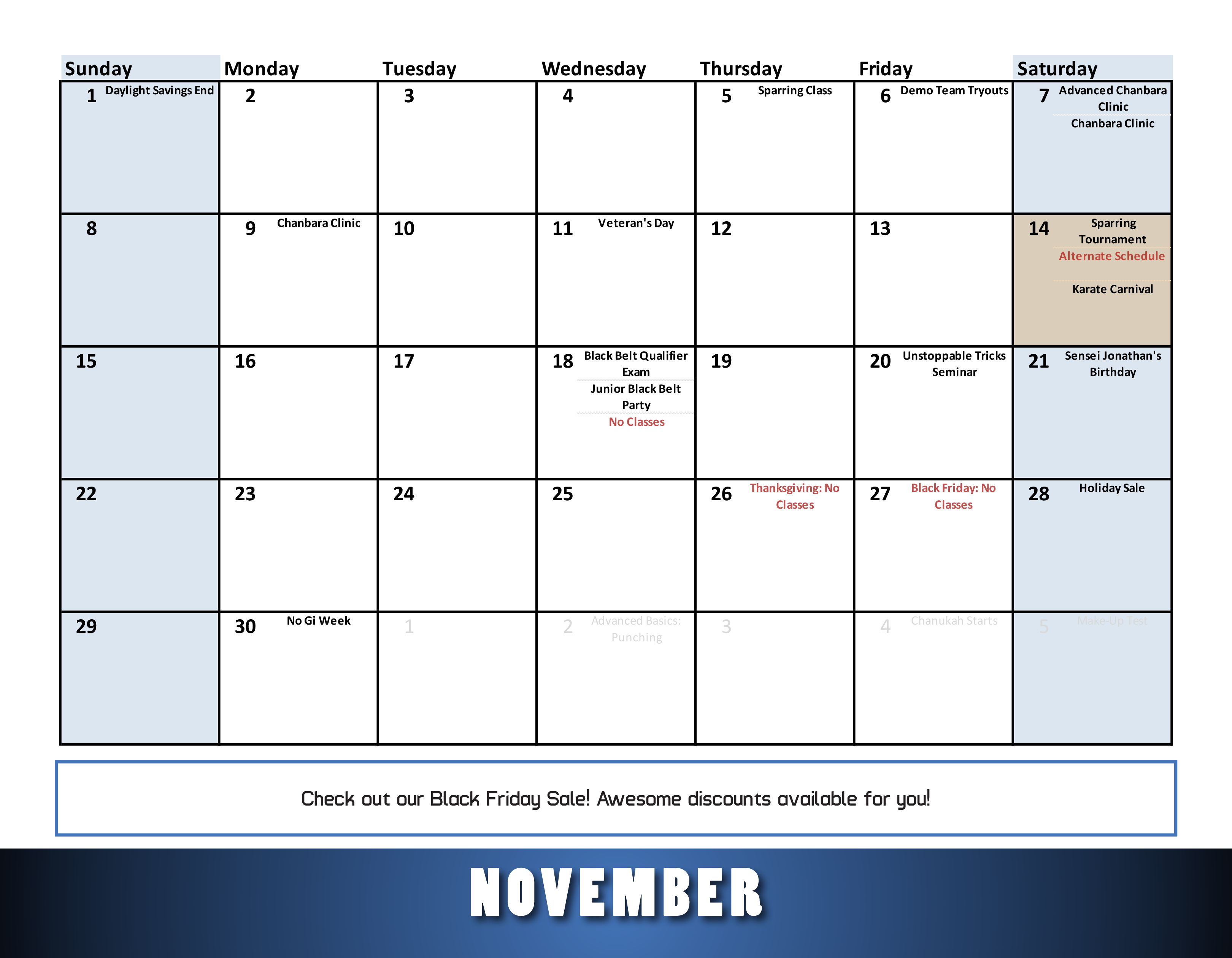 Junior Black Belt Party: Wednesday Nov 18th 7 – 7:45 PM